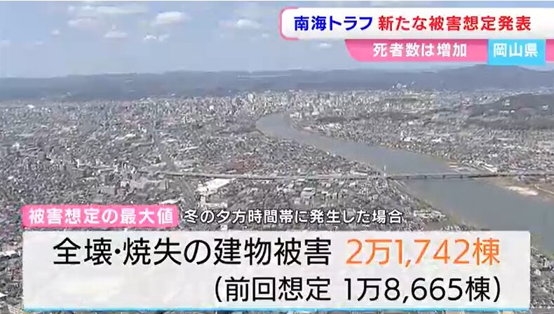 岡山県が南海トラフ巨大地震の被害想定を