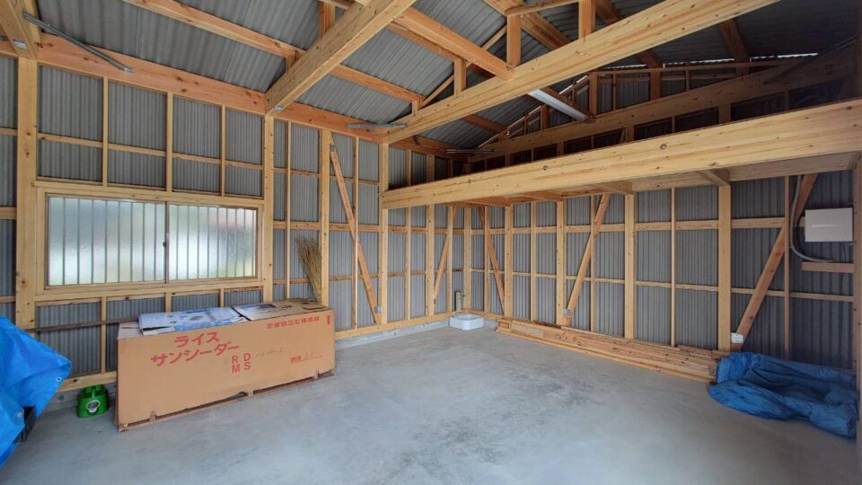 農業用倉庫+ロフトの室内