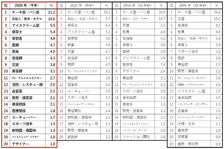 2026年なりたい職業ランキング